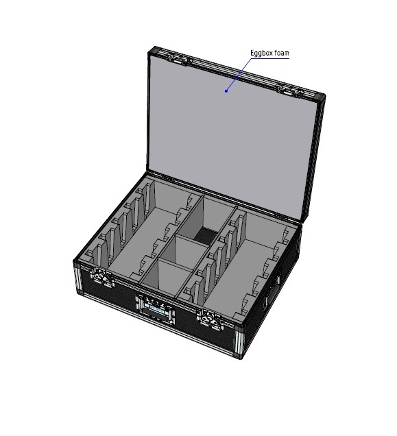 Een lichtgewicht maar stevige easycase voor 10 A&H ME-1 toestellen en hun attributen. De toestellen schuiven proper in op maat gefreesd hardschuim. De koffer heeft 3 goed geplaatste fliphendels die het gebruik en transport vergemakkelijken.